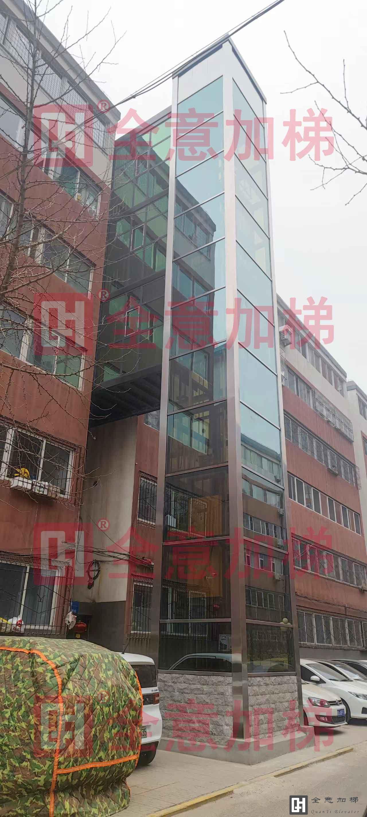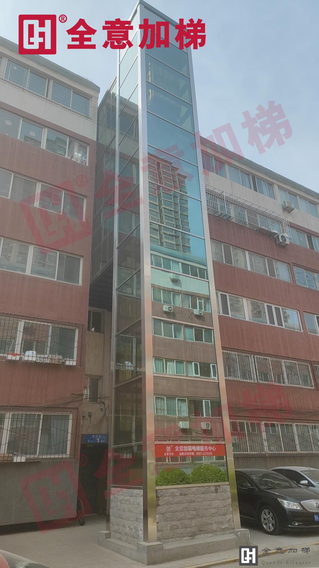 富佳苑小區(qū)位于小店區(qū)針織街,電梯屹立于5號樓一單元,整體采用綠色鍍膜玻璃,半層入戶方式,三道連廊。