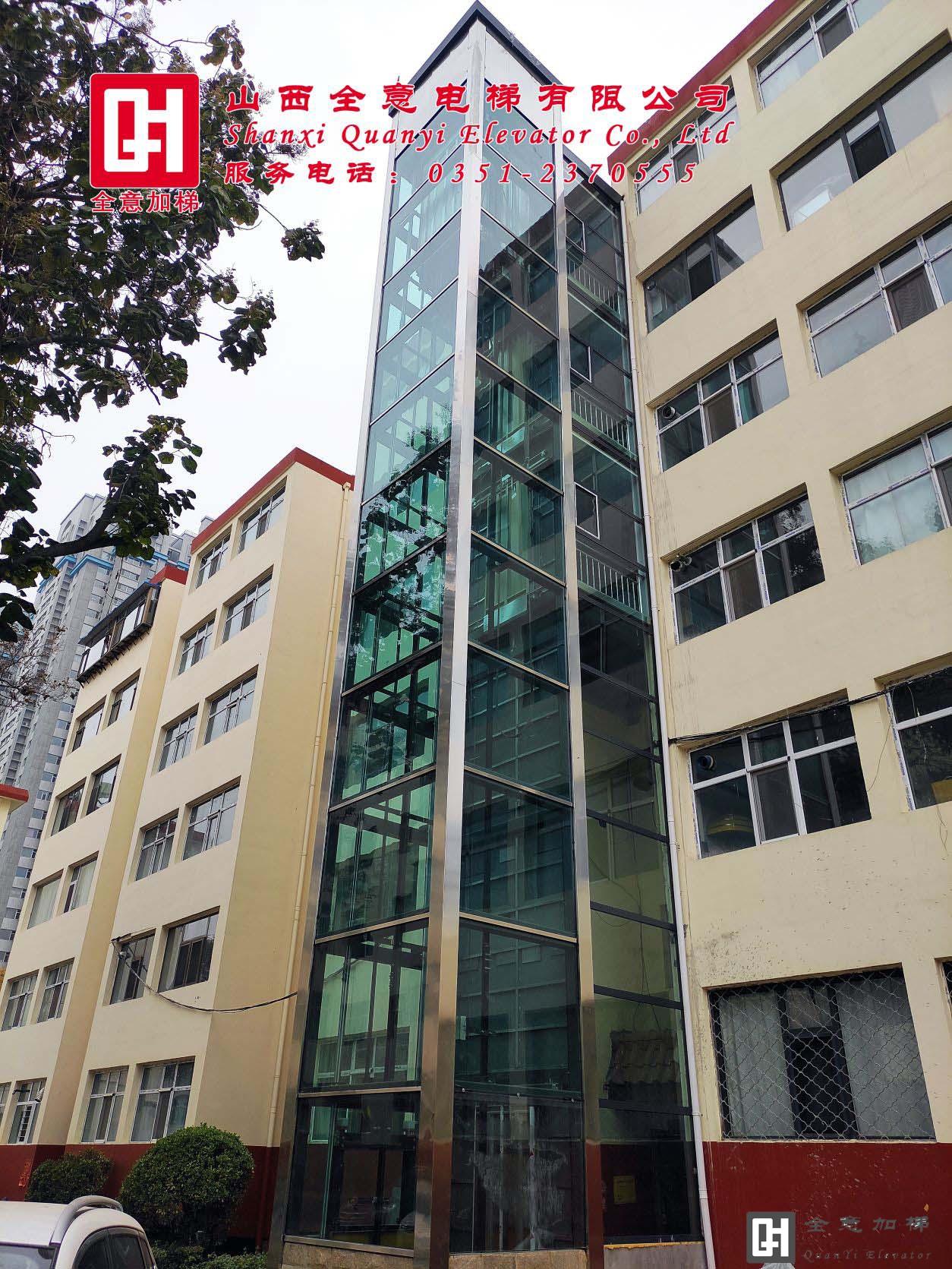 綠緣小區位于太原市杏花嶺區小東門街新開南巷,小區共有住宅樓17幢,目前已經建成交付使用電梯14部,一部為平層入戶,一部為半層入戶,采用綠色鍍膜玻璃幕墻,鋼結構不銹鋼包邊,天然石材裝飾,配置兩個防撞角,電梯采用惠州遠大牌的630公斤電梯。