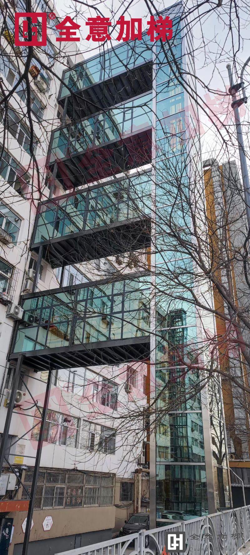 新建南路72號院緊鄰南沙河快速路,樓層高,切樓下有車輛通行需求,只能采用長連廊半層入戶的方式加裝電梯,成為了快速路旁的一道美麗風景。
